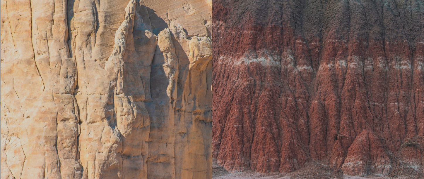 Each section isolates geological surface as structure and archive, allowing form to function as language.